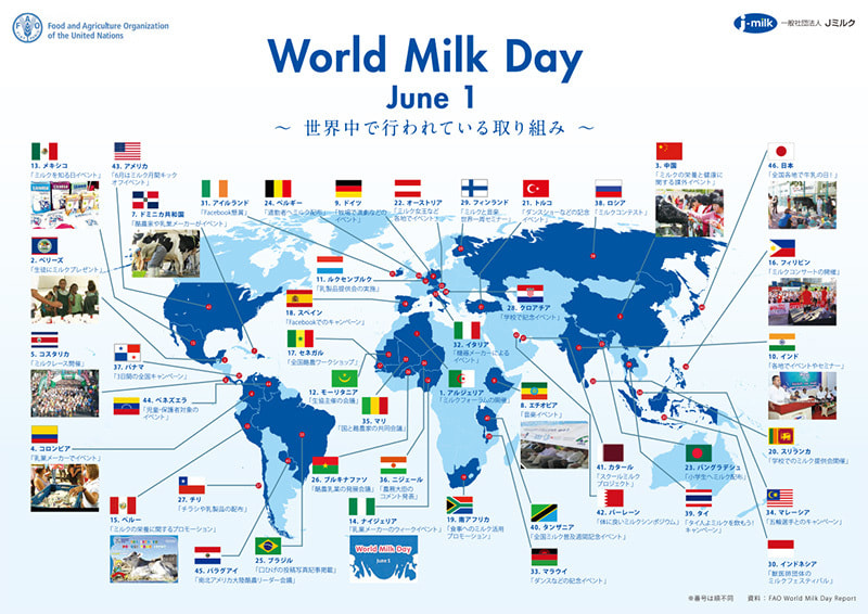 このことから2001年に国連食糧農業機関(FAO)が6月1日を「世界牛乳の日(World Milk Day)」とすることを提唱しました。