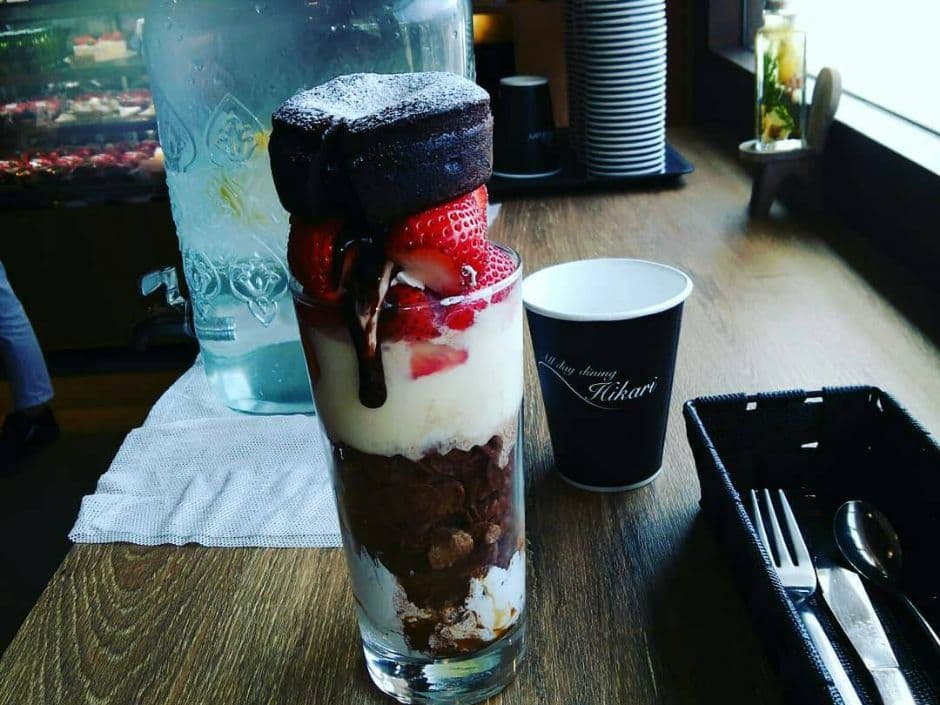 高石駅目の前にあるカフェ、オールデイダイニングヒカリさんといえば、インスタ映えのパフェ!インパクトもさることながらそのお味も大満足いただけることまちがいなしです。店内も高級感あふれる高センスなつくりになっており、雰囲気も一緒に楽しめます。